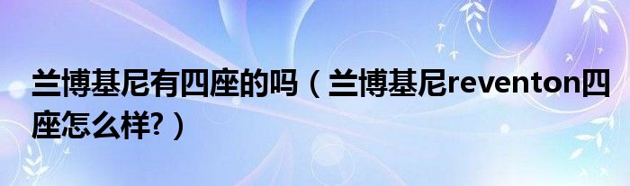 大家好,小美来为大家解答以上问题。兰博基尼有四座的吗,兰博基尼reventon四座怎么样?很多人还不知道,现在让我们一起来看看吧!