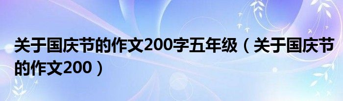 关于关于国庆节的作文200字五年级,关于国庆节的作文200这个很多人还不知道,今天菲菲来为大家解答以上的问题,现在让我们一起来看看吧!