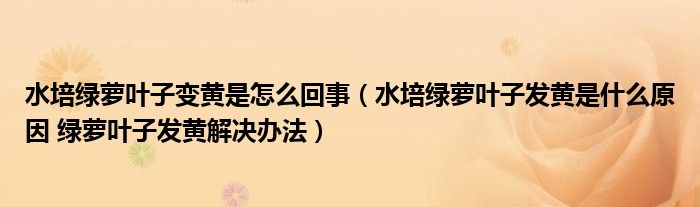 21、 通过上面的介绍,相信花友们一定知道水培绿萝叶子发黄怎么办了吧?只要找到原因就可以对症下药,但是还是要在养殖的时候多加注意,大家如果想要了解更多花卉信息敬请关注更多精彩内容。