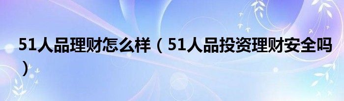 关于51人品理财怎么样,51人品投资理财安全吗这个很多人还不知道,今天菲菲来为大家解答以上的问题,现在让我们一起来看看吧!