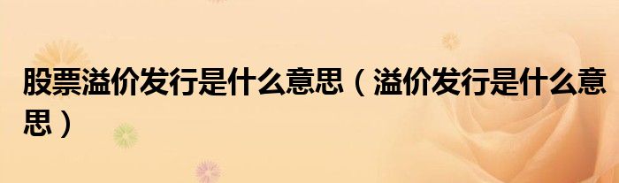 关于股票溢价发行是什么意思,溢价发行是什么意思这个很多人还不知道,今天菲菲来为大家解答以上的问题,现在让我们一起来看看吧!