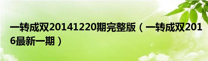 关于一转成双20141220期完整版,一转成双2016最新一期这个很多人还不知道,今天菲菲来为大家解答以上的问题,现在让我们一起来看看吧!