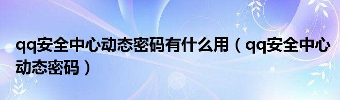 关于qq安全中心动态密码有什么用,qq安全中心动态密码这个很多人还不知道,今天菲菲来为大家解答以上的问题,现在让我们一起来看看吧!