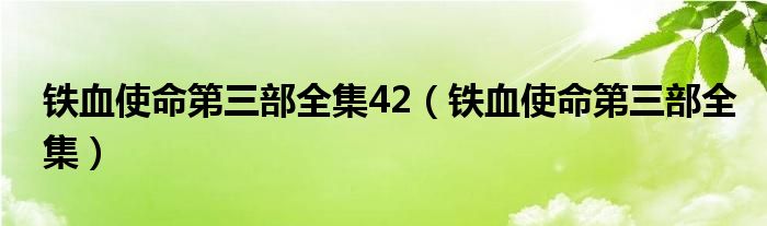 关于铁血使命第三部全集42,铁血使命第三部全集这个很多人还不知道,今天菲菲来为大家解答以上的问题,现在让我们一起来看看吧!