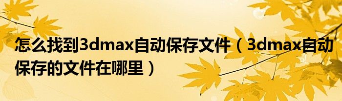 关于怎么找到3dmax自动保存文件,3dmax自动保存的文件在哪里这个很多人还不知道,今天菲菲来为大家解答以上的问题,现在让我们一起来看看吧!