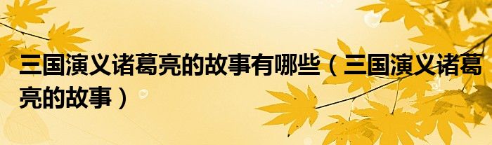 关于三国演义诸葛亮的故事有哪些,三国演义诸葛亮的故事这个很多人还不知道,今天菲菲来为大家解答以上的问题,现在让我们一起来看看吧!
