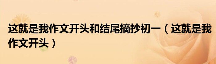 关于这就是我作文开头和结尾摘抄初一,这就是我作文开头这个很多人还不知道,今天菲菲来为大家解答以上的问题,现在让我们一起来看看吧!
