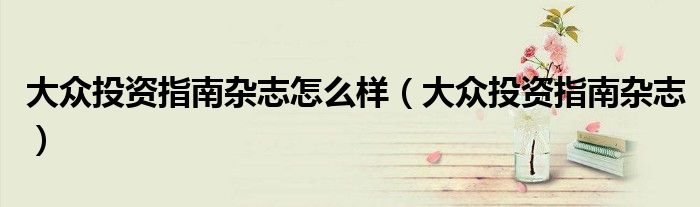 关于大众投资指南杂志怎么样,大众投资指南杂志这个很多人还不知道,今天菲菲来为大家解答以上的问题,现在让我们一起来看看吧!
