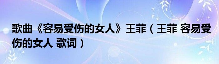 1、《容易受伤的女人》演唱:王菲作曲:中岛美雪作词:何启弘留着你隔夜的吻,感觉不到你有多真想你天色已黄昏,脸上还有泪痕如果从此不过问,不想对你难舍难分是否夜就不会冷,心就不会疼颤抖的唇,等不到你的吻一个容易受伤的女人,希望希望希望你会心疼我害怕一个人,为何不肯轻轻唤我一声,安慰容易受伤的女人为了你我情愿给一生,黑夜里不敢点灯是谁让我越陷越深,让我深爱过的人越来越陌生,留着你隔夜的吻感觉不到你有多真,想你天色已黄昏脸上还有泪痕,如果从此不过问不想对你难舍难分,是否夜就不会冷心就不会疼,颤抖的唇等不到你的吻,一个容易受伤的女人希望希望希望你会心疼,我害怕一个人为何不肯,轻轻唤我一声安慰容易受伤的女人,你的眼神烫伤我的青春黑夜里不敢点灯,是谁让我越陷越深让我深爱过的人,越来越陌生颤抖的唇,等不到你的吻一个容易受伤的女人,希望希望希望你会心疼我害怕一个人,为何不肯轻轻唤我一声,安慰容易受伤的女人为了你我情愿给一生,黑夜里不敢点灯是谁让我越陷越深,让我深爱过的人越来越陌生扩展资料:《容易受伤的女人》是王菲于1992年下半年,从美国返港并重新踏入乐坛而发行的唱片《COMING HOME》中的歌曲。