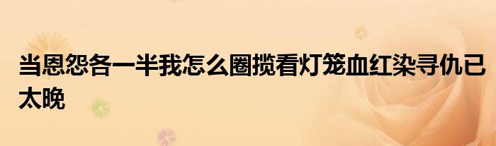 关于当恩怨各一半我怎么圈揽看灯笼血红染寻仇已太晚这个很多人还不知道,今天菲菲来为大家解答以上的问题,现在让我们一起来看看吧!