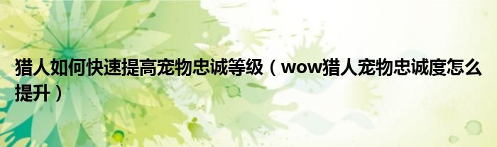 关于猎人如何快速提高宠物忠诚等级,wow猎人宠物忠诚度怎么提升这个很多人还不知道,今天菲菲来为大家解答以上的问题,现在让我们一起来看看吧!