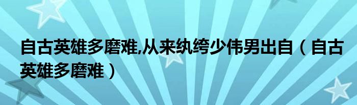 关于自古英雄多磨难,从来纨绔少伟男出自,自古英雄多磨难这个很多人还不知道,今天菲菲来为大家解答以上的问题,现在让我们一起来看看吧!