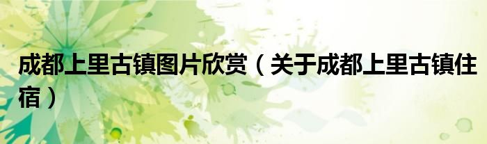 关于成都上里古镇图片欣赏,关于成都上里古镇住宿这个很多人还不知道,今天菲菲来为大家解答以上的问题,现在让我们一起来看看吧!