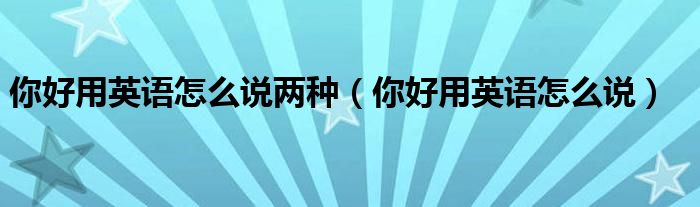 关于你好用英语怎么说两种,你好用英语怎么说这个很多人还不知道,今天菲菲来为大家解答以上的问题,现在让我们一起来看看吧!