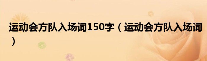 关于运动会方队入场词150字,运动会方队入场词这个很多人还不知道,今天菲菲来为大家解答以上的问题,现在让我们一起来看看吧!