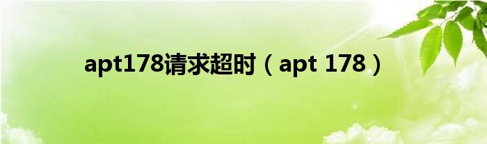 大家好,来宝来为大家解答以下问题,apt178请求超时,apt 178很多人还不知道,今天让我们一起来看看吧!