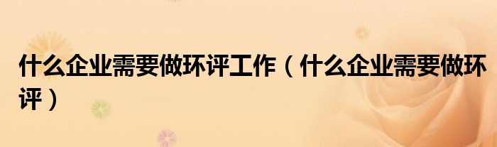 关于什么企业需要做环评工作,什么企业需要做环评这个很多人还不知道,今天菲菲来为大家解答以上的问题,现在让我们一起来看看吧!