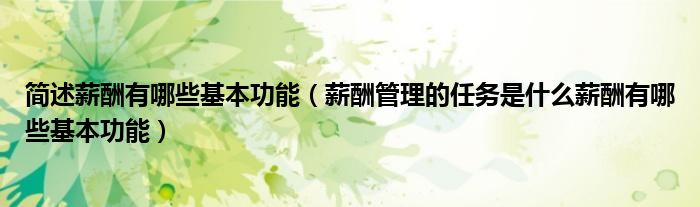 关于简述薪酬有哪些基本功能,薪酬管理的任务是什么薪酬有哪些基本功能这个很多人还不知道,今天菲菲来为大家解答以上的问题,现在让我们一起来看看吧!