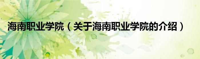大家好,今天小乐来为大家解答以上的问题。海南职业学院,关于海南职业学院的介绍很多人还不知道,现在让我们一起来看看吧!