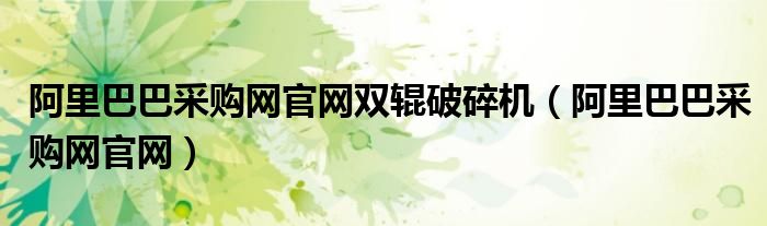 关于阿里巴巴采购网官网双辊破碎机,阿里巴巴采购网官网这个很多人还不知道,今天菲菲来为大家解答以上的问题,现在让我们一起来看看吧!