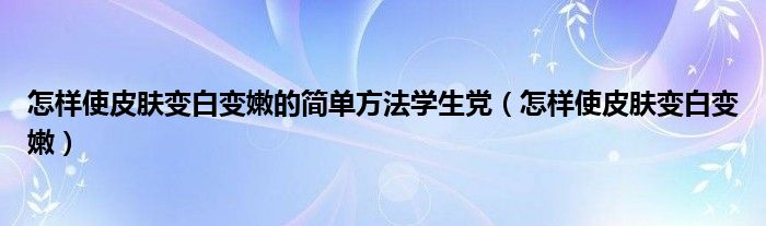 关于怎样使皮肤变白变嫩的简单方法学生党,怎样使皮肤变白变嫩这个很多人还不知道,今天菲菲来为大家解答以上的问题,现在让我们一起来看看吧!