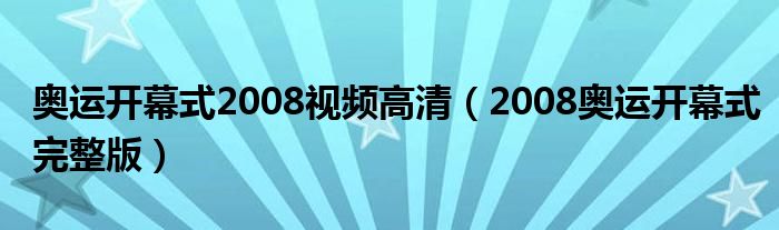 关于奥运开幕式2008视频高清,2008奥运开幕式完整版这个很多人还不知道,今天菲菲来为大家解答以上的问题,现在让我们一起来看看吧!