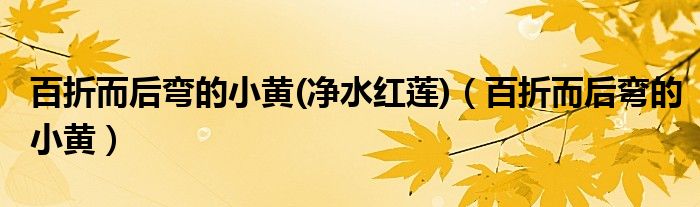 关于百折而后弯的小黄(净水红莲),百折而后弯的小黄这个很多人还不知道,今天菲菲来为大家解答以上的问题,现在让我们一起来看看吧!