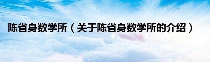 陈省身数学所(关于陈省身数学所的介绍)
