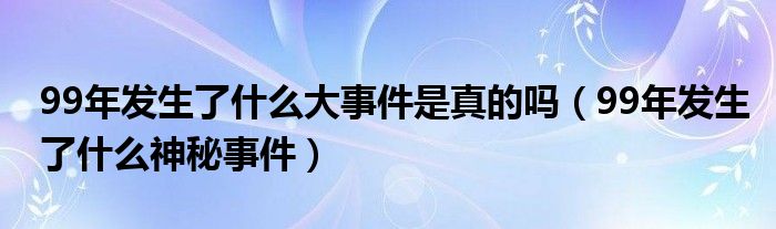 大家好,小晋来为大家解答以下问题,关于99年发生了什么大事件是真的吗,99年发生了什么神秘事件很多人还不知道,今天让我们一起来看看吧!
