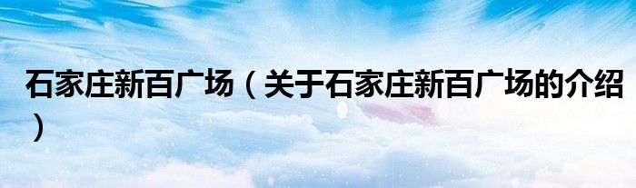 大家好,小都来为大家解答以上的问题。石家庄新百广场,关于石家庄新百广场的介绍很多人还不知道,现在让我们一起来看看吧!
