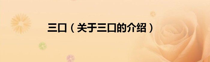 大家好,小都来为大家解答以上的问题。三口,关于三口的介绍很多人还不知道,现在让我们一起来看看吧!