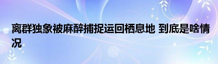 大家好.我是互联百科的羽儿,现在为大家解决以上离群独象被麻醉捕捉运回栖息地 到底是啥情况的问题.