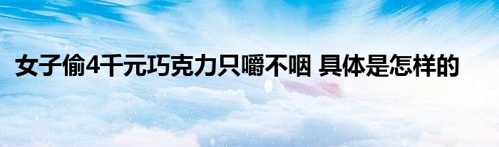 大家好.我是互联百科的羽儿,现在为大家解决以上女子偷4千元巧克力只嚼不咽 具体是怎样的的问题.