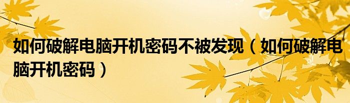 大家好,雨雨来为大家解答以上问题,如何破解电脑开机密码不被发现,如何破解电脑开机密码很多人还不知道,现在让我们一起来看看吧!