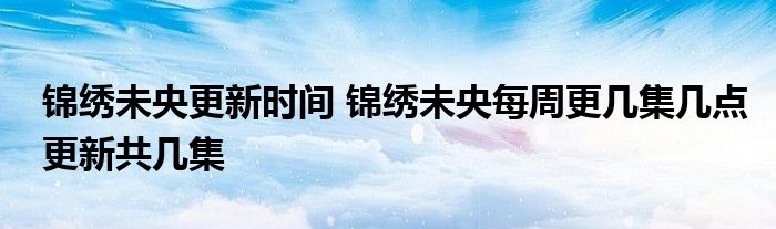 大家好.我是互联百科的羽儿,现在为大家解决以上锦绣未央更新时间 锦绣未央每周更几集几点更新共几集的问题.