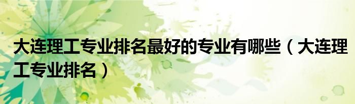 关于大连理工专业排名最好的专业有哪些,大连理工专业排名这个很多人还不知道,今天菲菲来为大家解答以上的问题,现在让我们一起来看看吧!