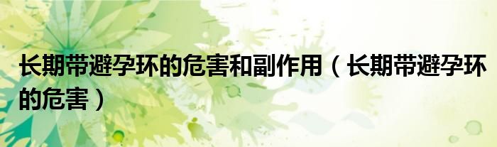 大家好,乐天来为大家解答以下的问题,长期带避孕环的危害和副作用,长期带避孕环的危害很多人还不知道,现在让我们一起来看看吧!