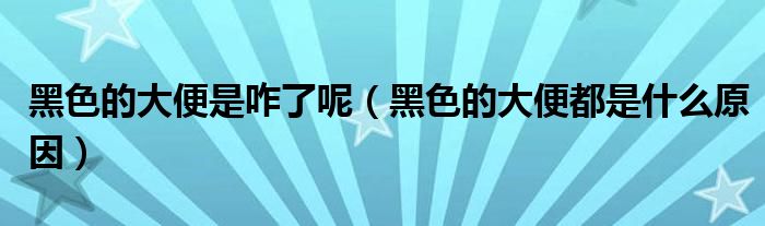 大家好,乐天来为大家解答以下的问题,黑色的大便是咋了呢,黑色的大便都是什么原因很多人还不知道,现在让我们一起来看看吧!