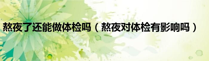 大家好,乐天来为大家解答以下的问题,熬夜了还能做体检吗,熬夜对体检有影响吗很多人还不知道,现在让我们一起来看看吧!