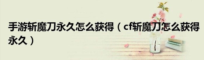 大家好,小晋来为大家解答以下问题,关于手游斩魔刀永久怎么获得,cf斩魔刀怎么获得永久很多人还不知道,今天让我们一起来看看吧!