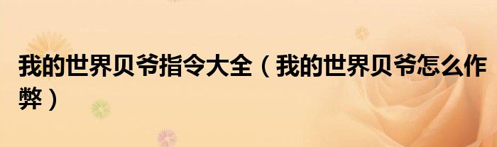 关于我的世界贝爷指令大全,我的世界贝爷怎么作弊这个很多人还不知道,今天菲菲来为大家解答以上的问题,现在让我们一起来看看吧!