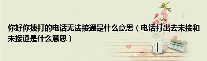 关于你好你拨打的电话无法接通是什么意思,电话打出去未接和未接通是什么意思这个很多人还不知道,今天菲菲来为大家解答以上的问题,现在让我们一起来看看吧!