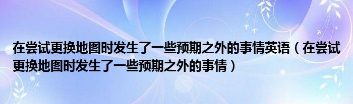 关于在尝试更换地图时发生了一些预期之外的事情英语,在尝试更换地图时发生了一些预期之外的事情这个很多人还不知道,今天菲菲来为大家解答以上的问题,现在让我们一起来看看吧!