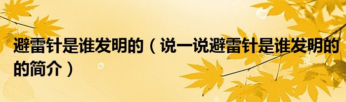 夏弥来为大家解答以下的问题,避雷针是谁发明的,说一说避雷针是谁发明的的简介,现在让我们一起来看看吧!