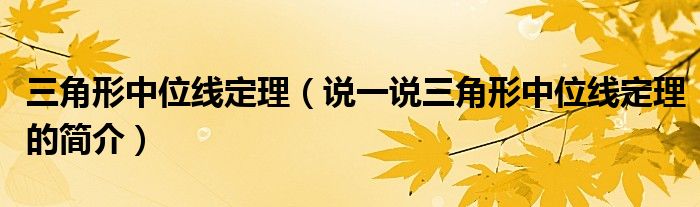 夏弥来为大家解答以下的问题,三角形中位线定理,说一说三角形中位线定理的简介,现在让我们一起来看看吧!