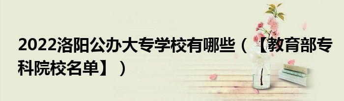 大家好,乐儿来为大家解答以下问题,2022洛阳公办大专学校有哪些,【教育部专科院校名单】很多人还不知道,现在让我们一起来看看吧!