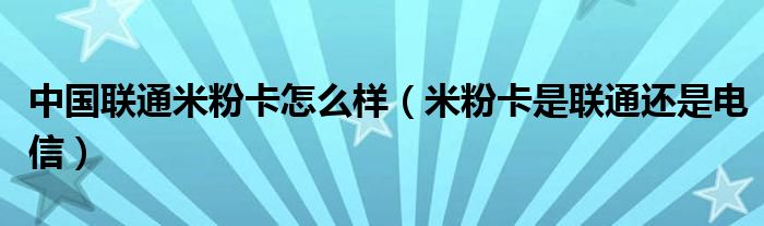 大家好,小晋来为大家解答以下问题,关于中国联通米粉卡怎么样,米粉卡是联通还是电信很多人还不知道,今天让我们一起来看看吧!