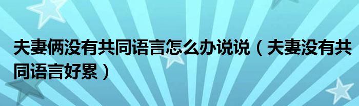 大家好,我是小科,我来为大家解答以上问题。夫妻俩没有共同语言怎么办说说,夫妻没有共同语言好累很多人还不知道,现在让我们一起来看看吧!
