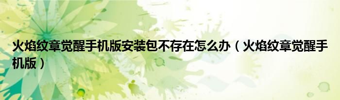 大家好,我是小科,我来为大家解答以上问题。火焰纹章觉醒手机版安装包不存在怎么办,火焰纹章觉醒手机版很多人还不知道,现在让我们一起来看看吧!