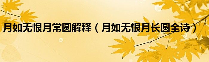 大家好,小联来为大家解答以上的问题。月如无恨月常圆解释,月如无恨月长圆全诗这个很多人还不知道,现在让我们一起来看看吧!